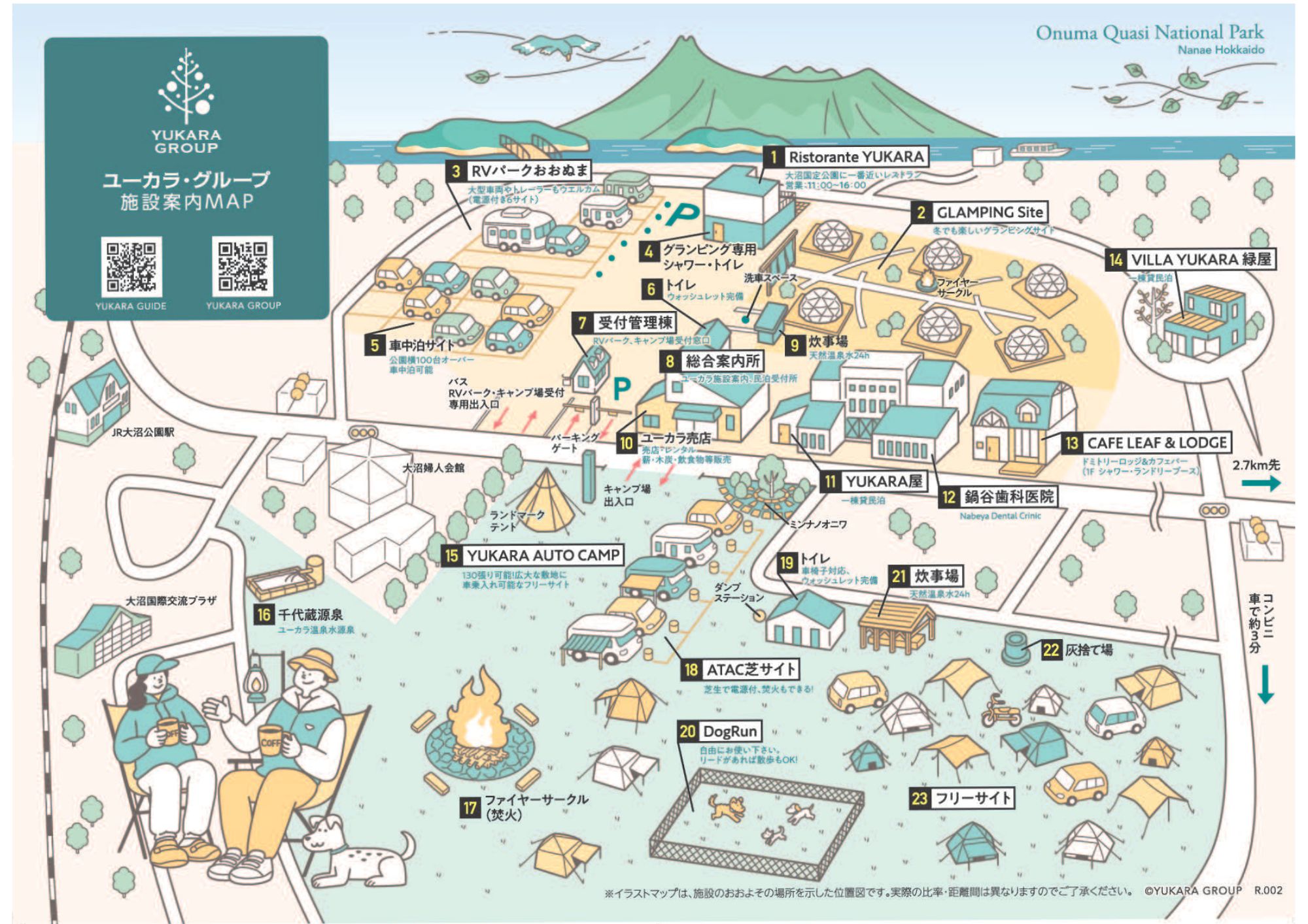 大沼国定公園に隣接するユーカラ グランピングは、北海道渡島半島の中央部分に位置し、